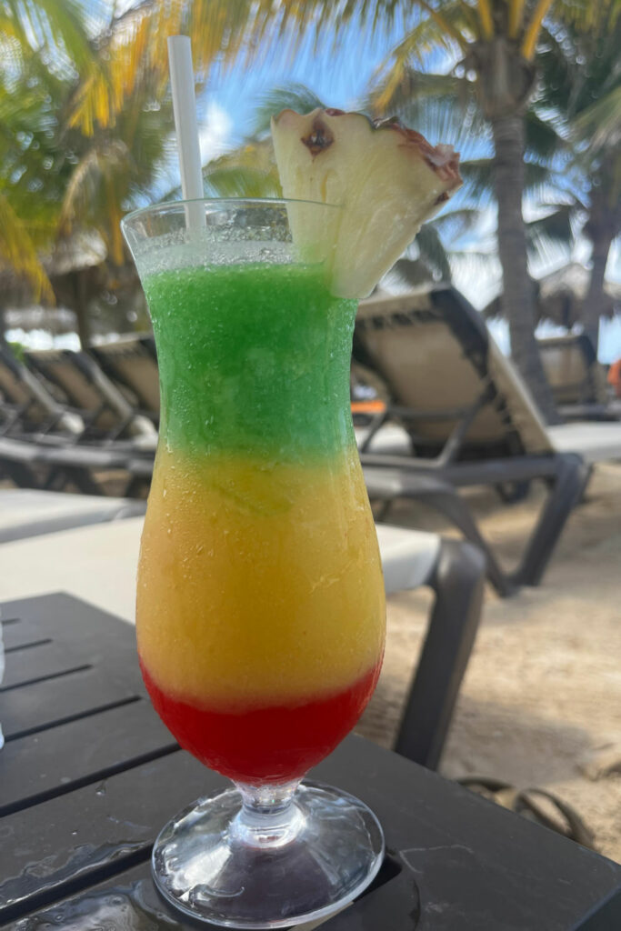 This vibrant drink isn’t just eye-catching with its bold layers of red, yellow, and green; it’s also a delicious blend of fruity and boozy flavors perfect for summer parties or beachy vibes year-round.